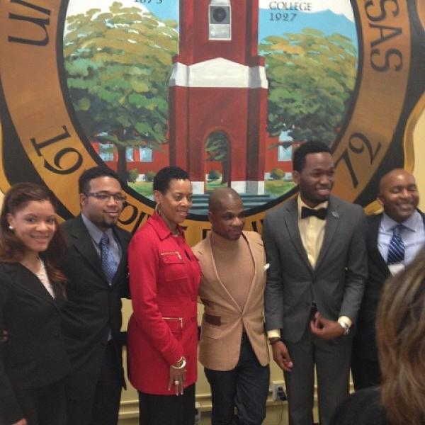 Kirk Franklin poses for pictures with staff and students at the University of Arkansas at Pine Bluff (UAPB) event